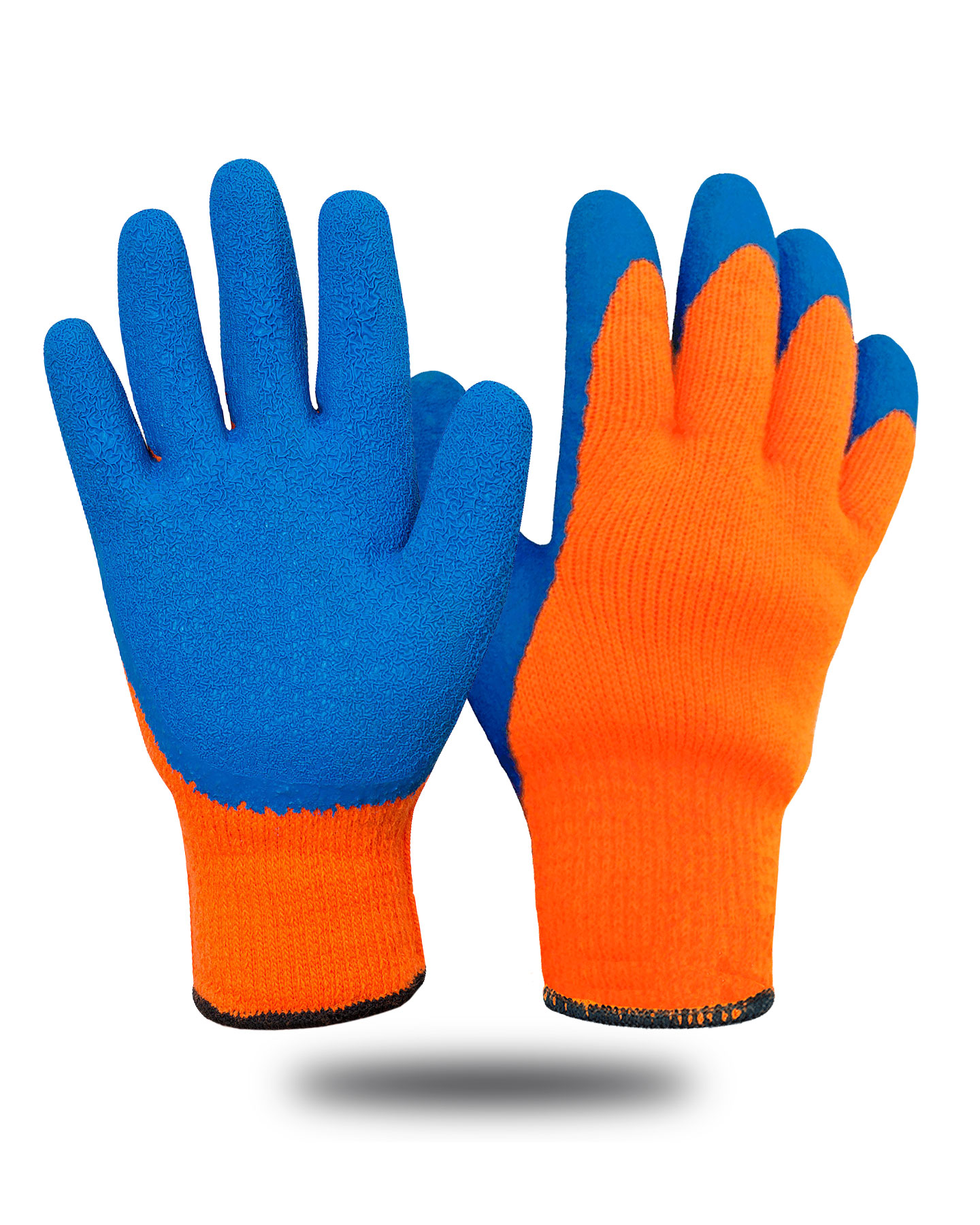 "Акриловые утепленные трикотажные перчатки со вспененным латексным покрытием. Плюс дополнительное покрытие кончиков пальцев.