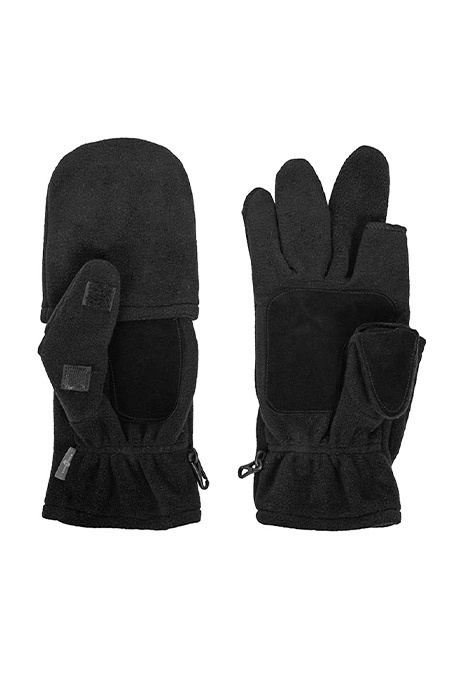 Предусматривает два способа эксплуатации: с надетой верхней частью, закрывающей пальцы (варежки), и с откинутой верхней частью (перчатки). В положении «перчатка» указательный палец открыт. В обоих положениях предусмотрена возможность открыть большой палец.