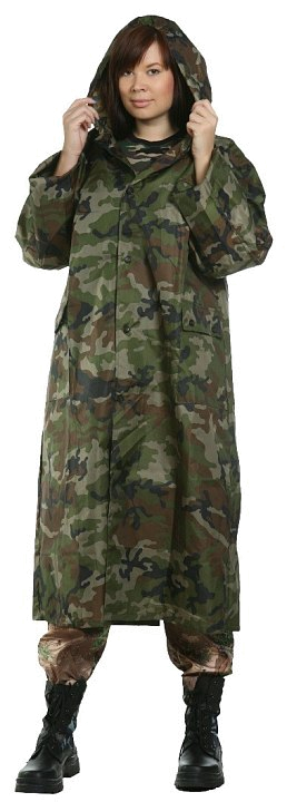 Плащ имеет центральную застежку на пуговицы, глубокий капюшон с регулировкой эластичным шнуром и два кармана. На спинке обработана шлица, что добавляет комфорта при движении. Плащ очень легок в уходе, быстро сохнет и практически не пачкается. Он удобен, прост в использовании и надежен.
