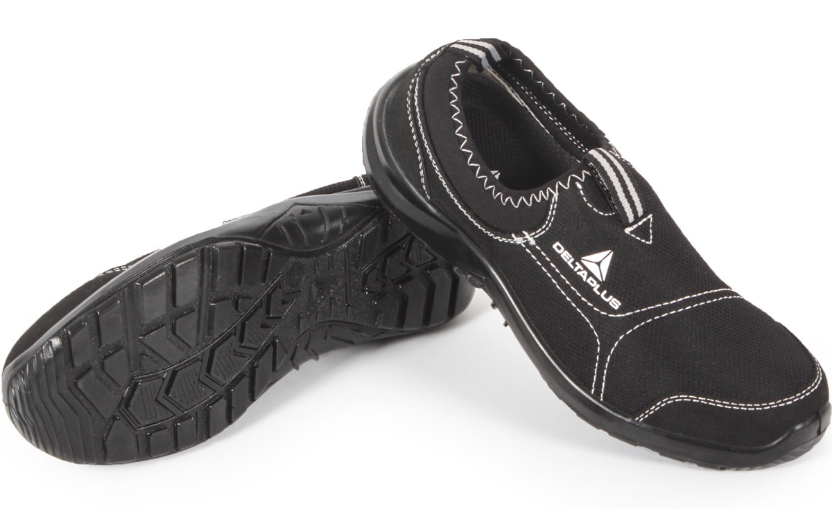 Туфли комбинированные из коттона и полиэстера. Металлический защитный подносок. Литьевой метод крепления подошвы. Подошва двухслойная, устойчивая к проколам (вшитая стальная стелька) и к скольжению (тест SRC). Съемная формованная стелька.