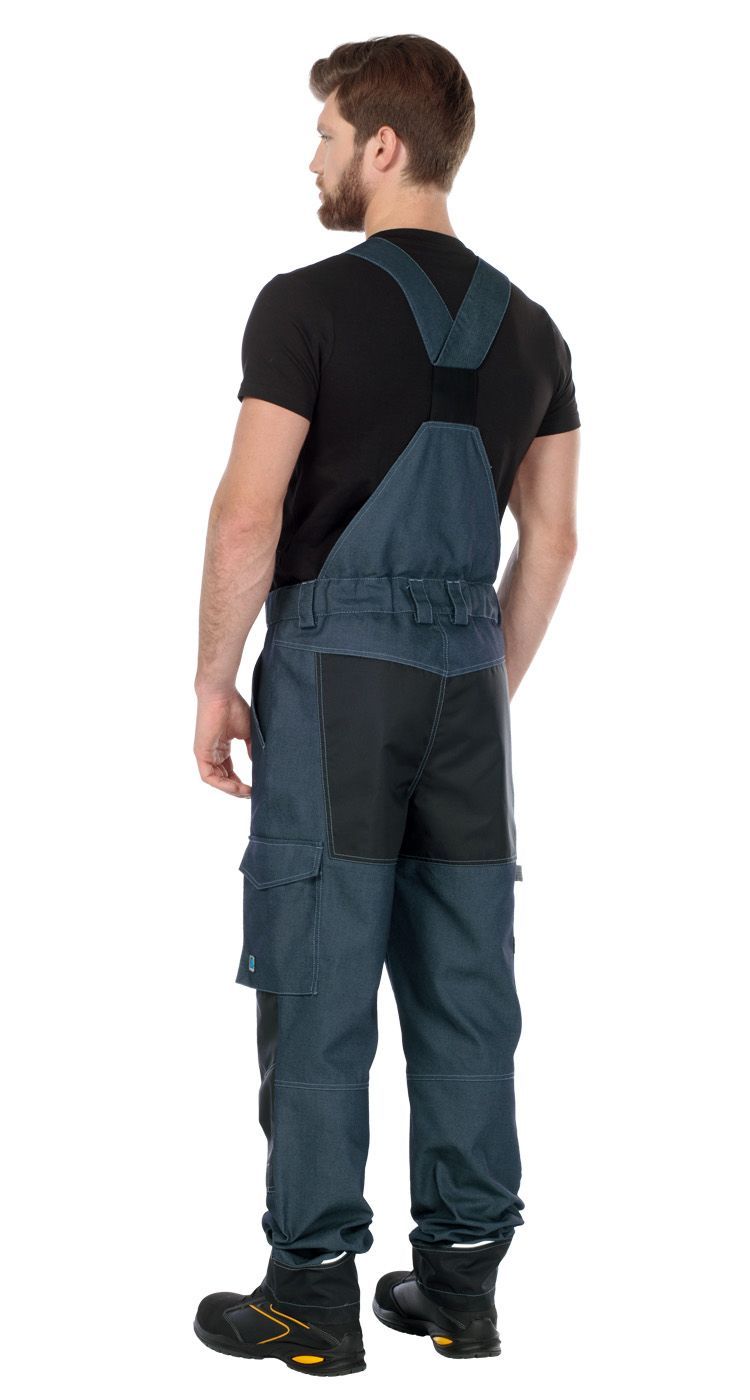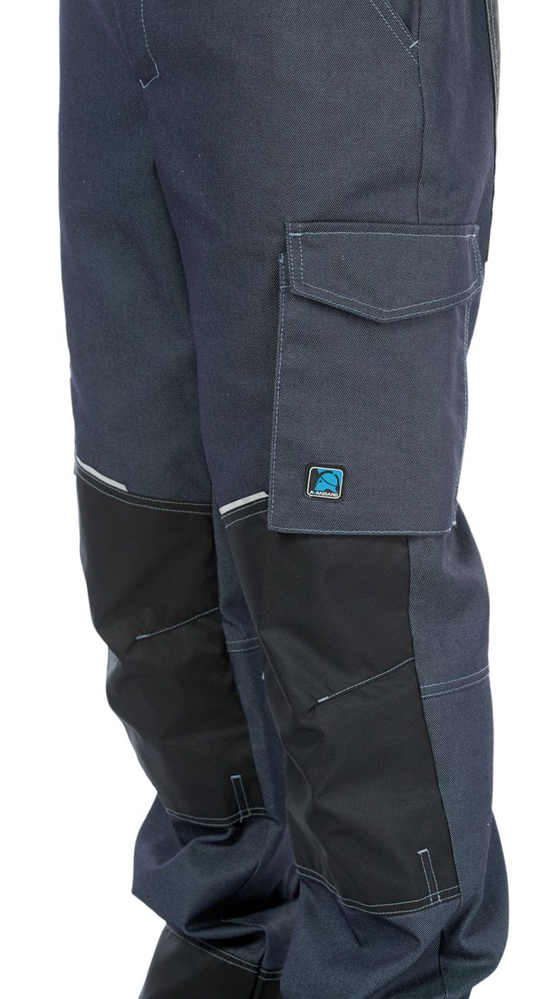 В области колен, сидения, по низу брюк расположены усилительные накладки из ткани стойкой к истиранию.