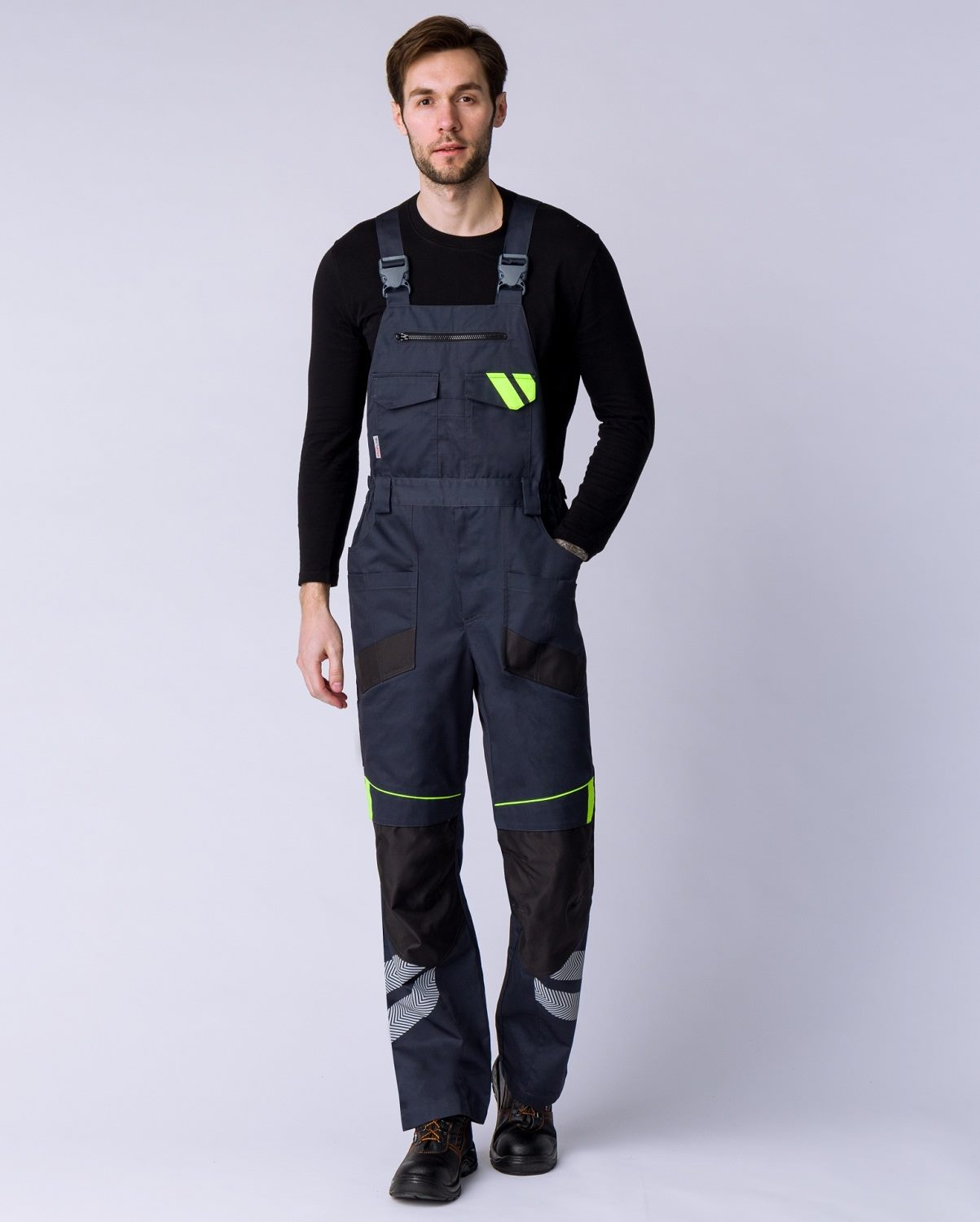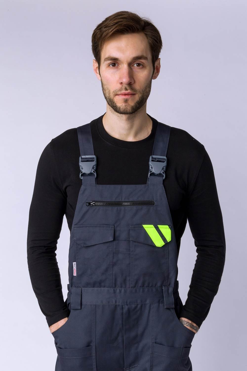 Полукомбинезон мужской рабочий «PROFLINE SPECIALIST» изготовлен в соответствии с ГОСТ для защиты от общих производственных загрязнений и механических воздействий. Оснащен множеством рабочих карманов. Объемные боковые карманы и специальный карман на бедре усилены прочной тканью от возможных порезов и предназначены для хранения инструмента. Многозональные карманы на бедрах, задние карманы на липучке и карман на груди могут использоваться для размещения крепежа и записей. Благодаря усиленным наколенникам и возможности размещения в них вставки из ЭВА униформа предназначена для длительной работы на коленях и в неудобных позах. Для работы в жаркое время года и при высоких температурах предусмотрена спинка из 3D сетки, обеспечивающая циркуляцию воздуха и комфортное состояние мастера. Бретели регулируются по длине, в поясе предусмотрена резинка.
