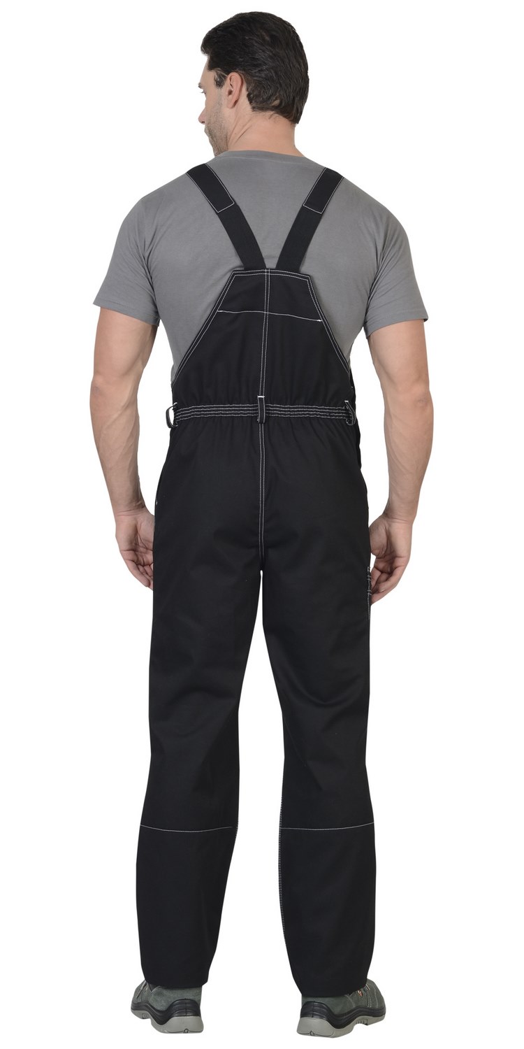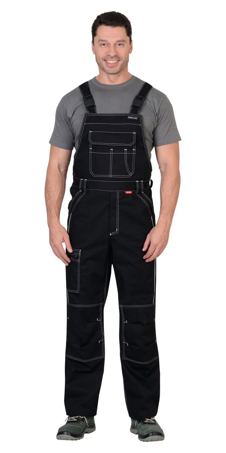 Полукомбинезон прямого силуэта, застежкой гульфика на молния, с различными многофункциональными карманами, с застежкой в правом боковом шве на пуговицы, с наколенниками, с бретелями регулируемыми эластичной тесьмой и фастексами, с эластичной тесьмой по линии талии, на передних половинках в рельеф вшивается СВ кант.
