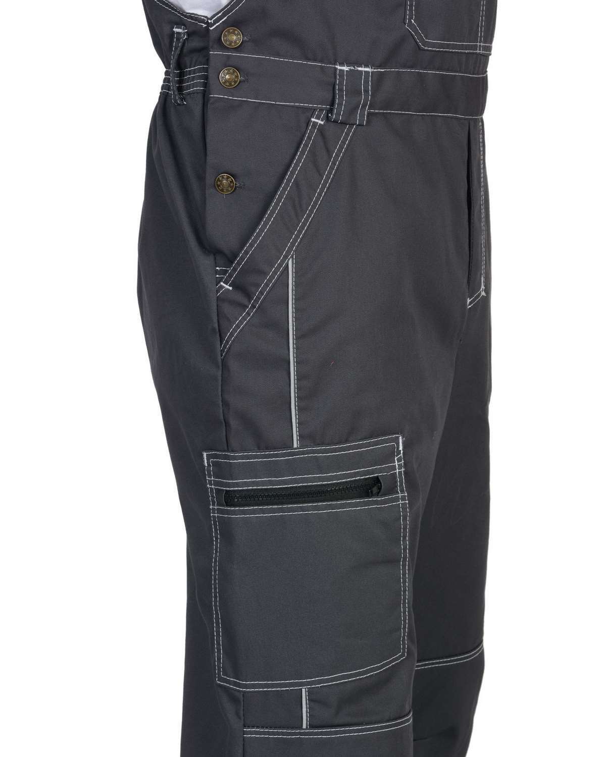 Полукомбинезон прямого силуэта, застежкой гульфика на молния, с различными многофункциональными карманами, с застежкой в правом боковом шве на пуговицы, с наколенниками, с бретелями регулируемыми эластичной тесьмой и фастексами, с эластичной тесьмой по линии талии, на передних половинках в рельеф вшивается СВ кант.