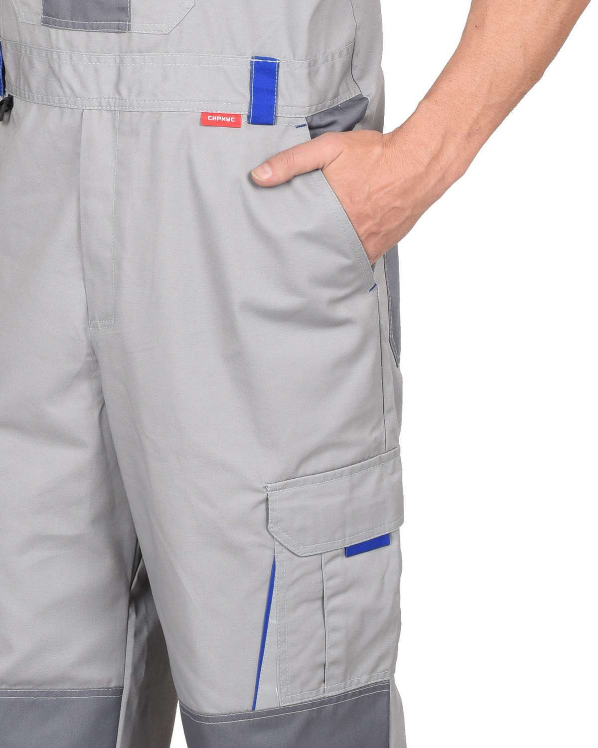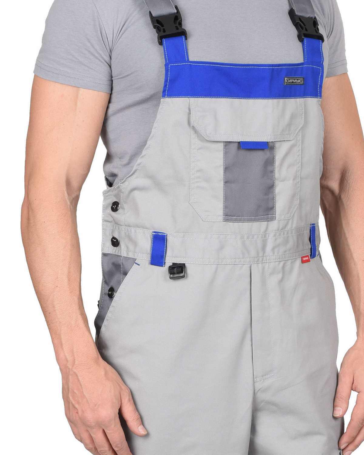 Полукомбинезон мужской летний «СИРИУС-СТАН» для защиты от общих производственных загрязнений в различных отраслях промышленности. Ткань верха: «Родос» смесовая с ВО пропиткой. Бретели регулируются эластичной тесьмой и фастексам.В полукомбинезоне предусмотрен СОП шириной 25 мм для обозначения сигнальной видимости.