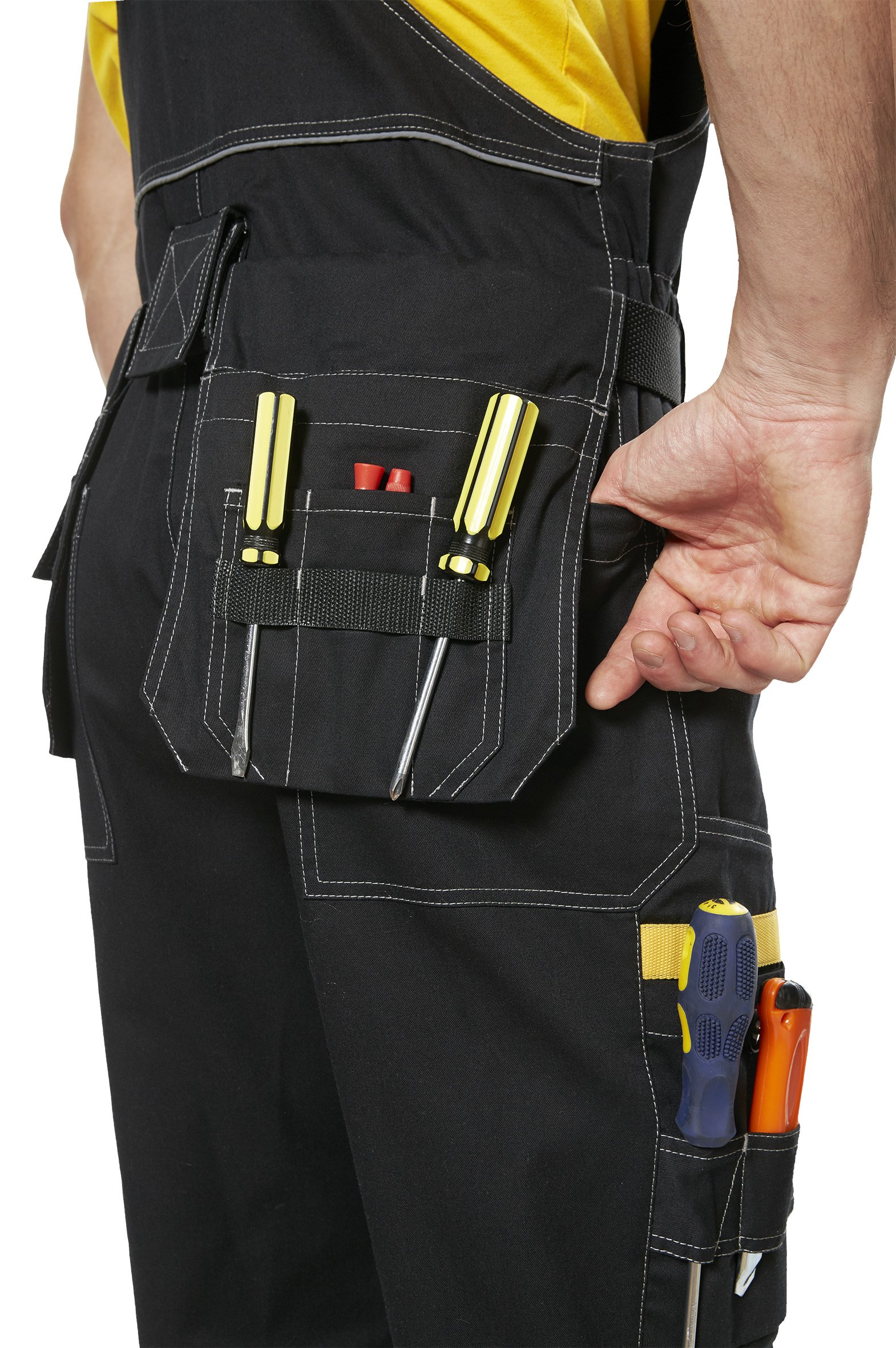 - боковой карман на брюках спереди с отделом для инструментов, задние накладные карманы, карманы с наклонным входом;