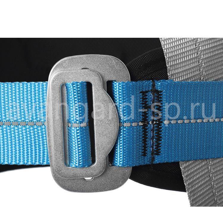 Верхние и нижние ремни имеют различные цвета, что помогает правильно надевать страховочную привязь