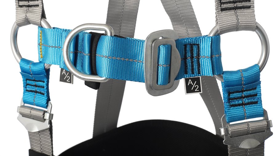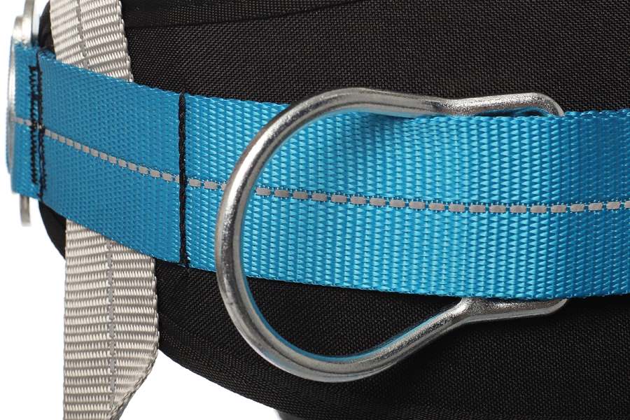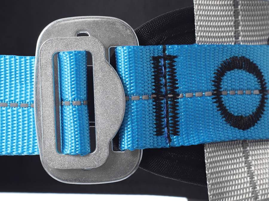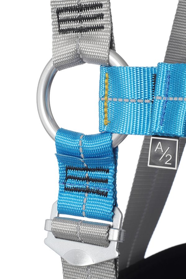 Верхние и нижние ремни имеют различные цвета, что помогает правильно надевать страховочную привязь
