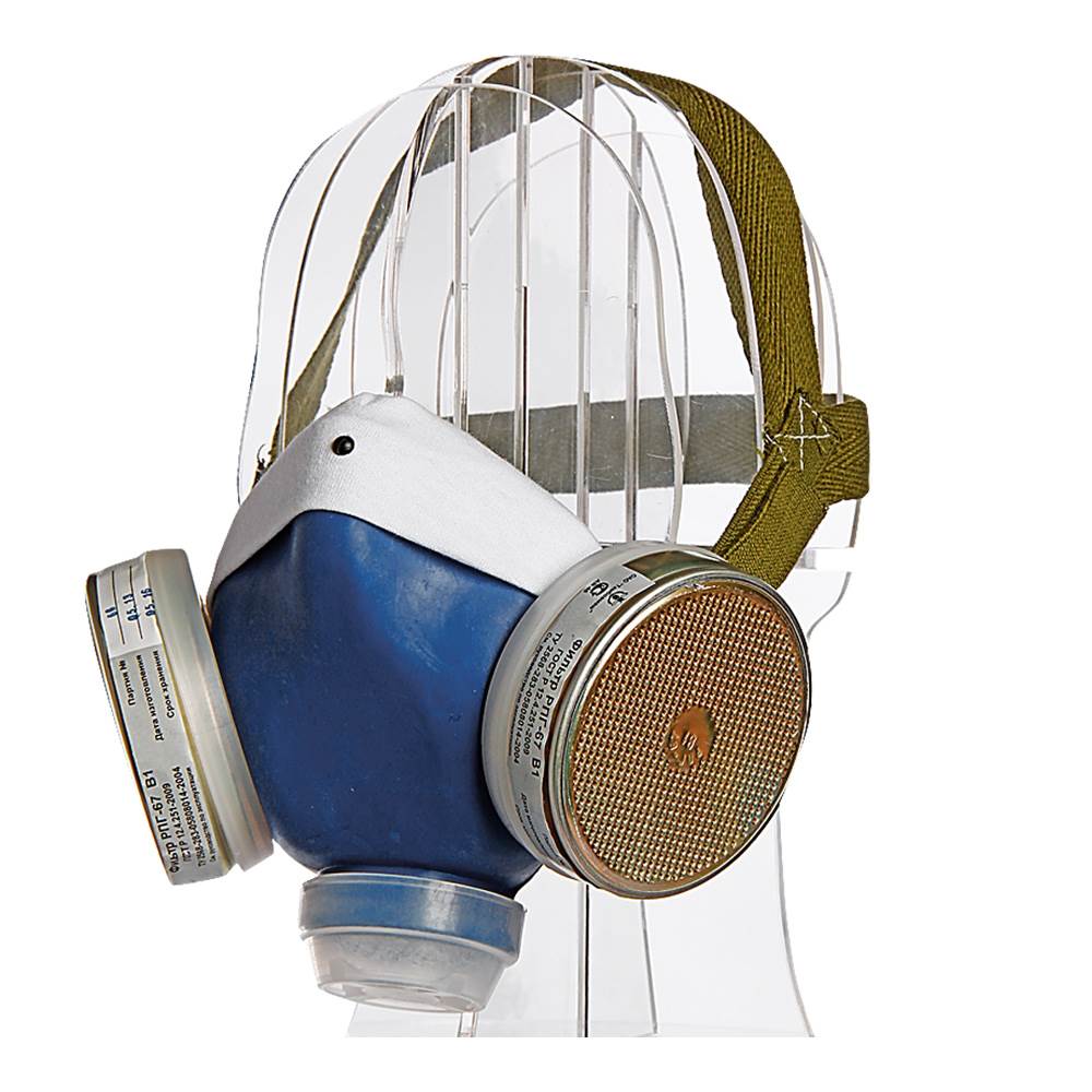 Комплектация: резиновая полумаска, трикотажный обтюратор, оголовье и два противогазовых фильтра ДОТ 120