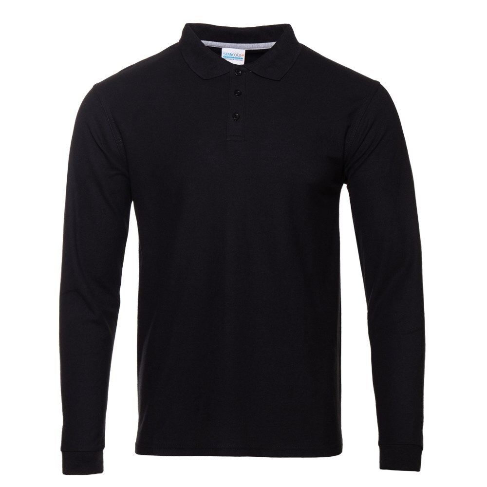 Мужская рубашка поло с длинным рукавом. Сперели планка на 3-х пуговицах,. Манжеты и воротник из резинки-рибаны.
