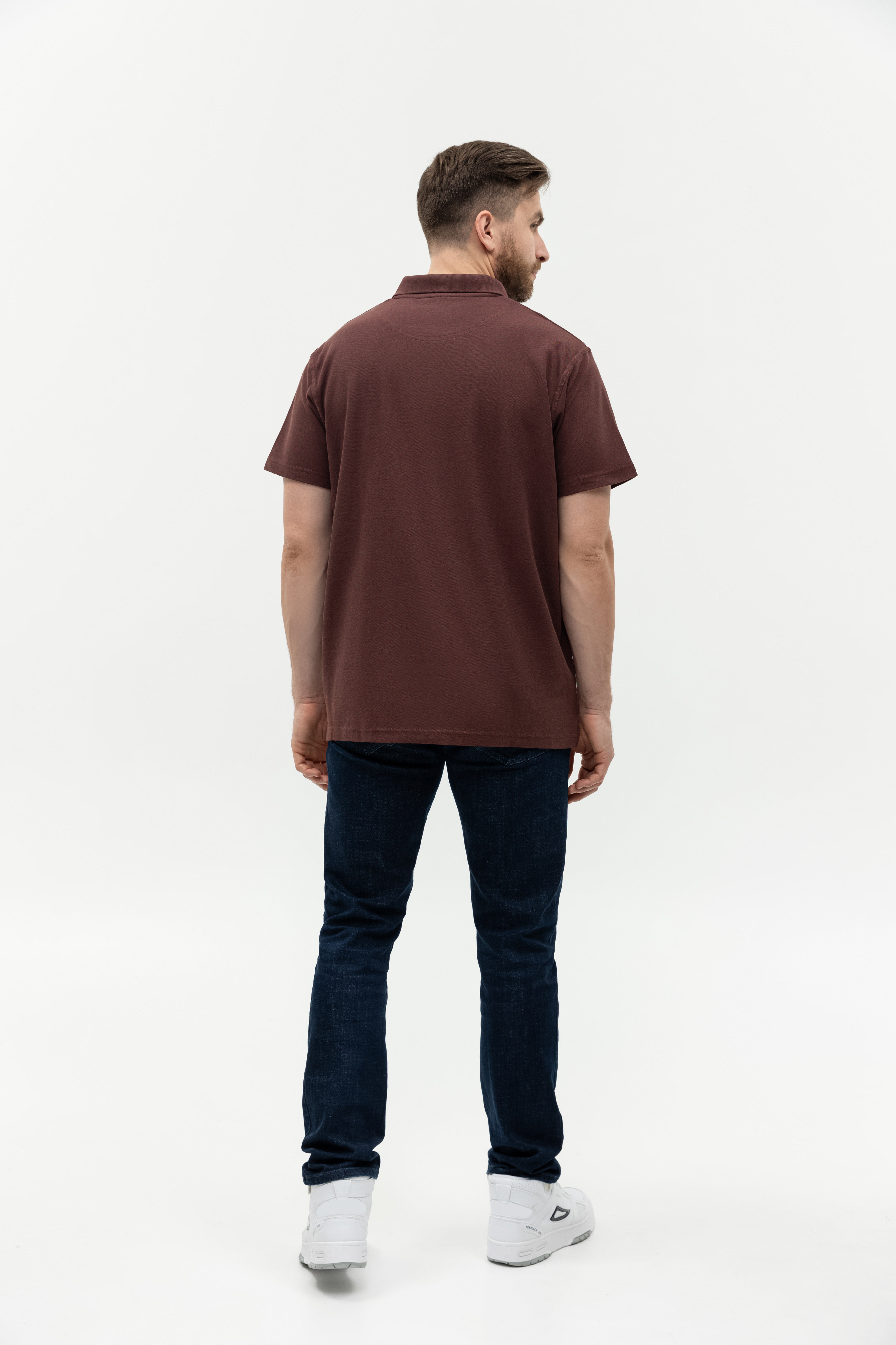 Поло выполнено из фактурной смесового ткани (65% хлопок, 35% полиэстер), благодаря чему изделие хорошо пропускает воздух и практически не мнется.
