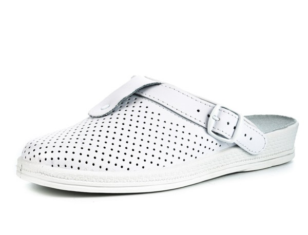 Универсальная модель, предназначена для медицинской, пищевой и иных промышленностей, для обслуживающего персонала. Наличие ремешка позволяет зафиксировать обувь на стопе. Перфорация способствует вентиляции стопы.