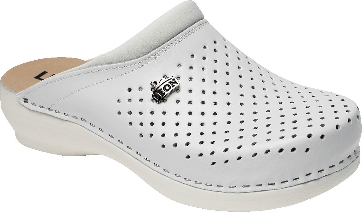Женские сабо PU100 (белый) – это легкая и удобная обувь на каждый день. Верх и подкладка изготовлены из натуральной кожи, которая в сочетании с работой вентиляционных отверстий создает правильный микроклимат внутри обуви. Легкая полиуретановая подошва с антистатическим эффектом и небольшим каблуком выглядит элегантно и при этом играет большую роль в профилактике усталости ног – действие ее конструкции направлено на равномерное распределение давления по всей стопе, что значительно облегчает работу и позвоночнику, и суставам.