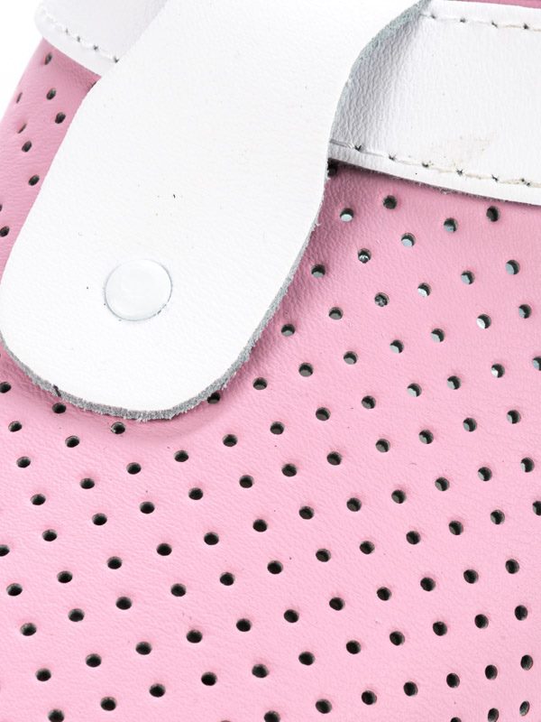Универсальная модель, предназначена для медицинской, пищевой и иных промышленностей, для обслуживающего персонала. Наличие ремешка позволяет зафиксировать обувь на стопе Перфорация способствует вентиляции стопы.