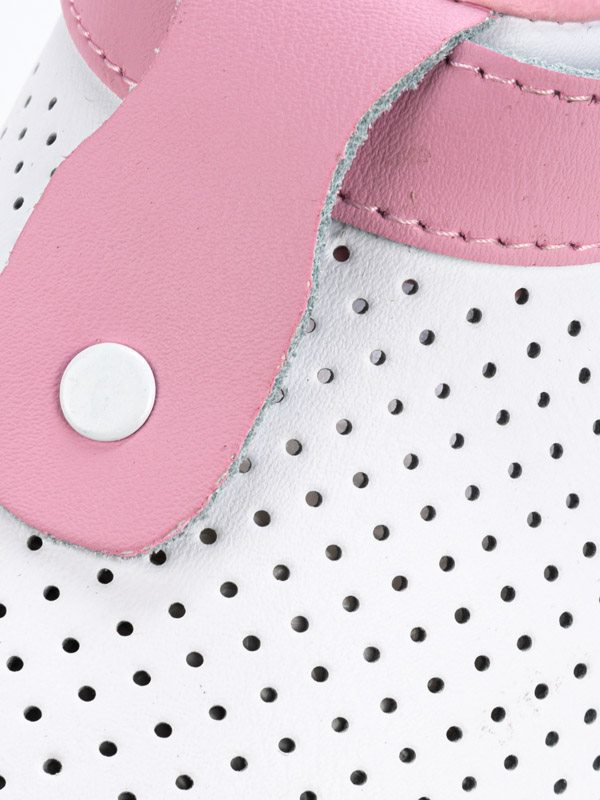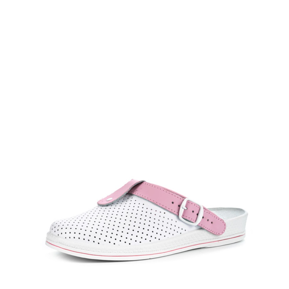 Универсальная модель, предназначена для медицинской, пищевой и иных промышленностей, для обслуживающего персонала. Наличие ремешка позволяет зафиксировать обувь на стопе Перфорация способствует вентиляции стопы.