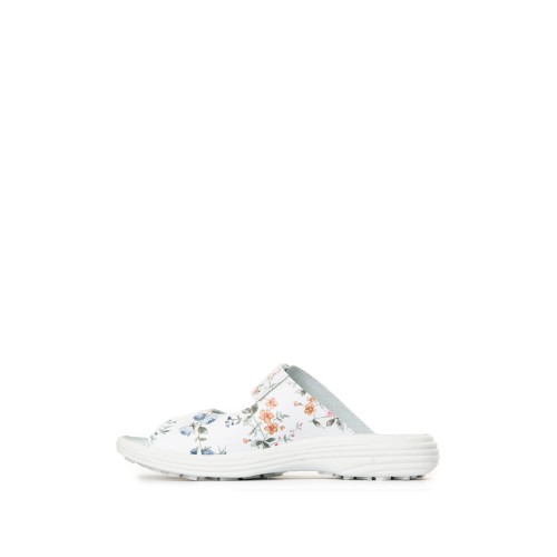 Сабо женские белого цвета с принтом из натуральной кожи на липучке с открытым носом