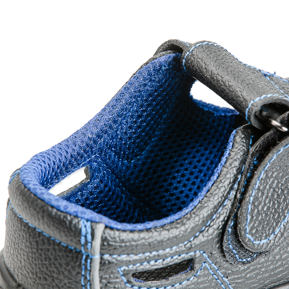 Кожаные открытые полуботинки-сандалии c фигурным мягким кантом и фронтальной перфорацией Prosafe серии basic обеспечивают оптимальную вентиляцию стопы при работе в жарких условиях. Текстильная сетчатая подкладка и съемная вкладная стелька создают комфортные условия носки в течении рабочей смены. Застежка на ремешке с фиксацией на "липучке" позволяет быстро отрегулировать обувь по полноте. Светоотражающие элементы повышают видимость работников в темное время суток и на неосвещенной территории. Однослойная маслобензостойкая полиуретановая подошва литьевого метода крепления имеет вставку в пяточной части подошвы, обладающую амортизационными свойствами и способную гасить ударные нагрузки при ходьбе. Глубина протектора ходового слоя обеспечивает хорошую сцепляемость с поверхностями и препятствует скольжению за счет рельефа протектора. Металлический подносок обеспечивает защиту пальцев стопы от механических повреждений ударной прочностью до 200Дж.