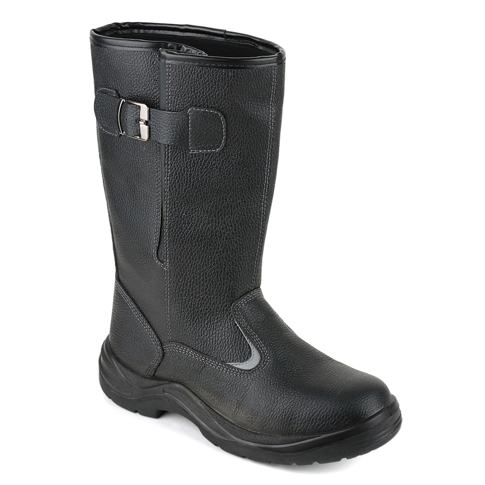 Кожаные сапоги Prosafe серии basic дополнены ремнем с металлической пряжкой для возможности регулировать и комфортно фиксировать ширину голенища. Текстильная сетчатая подкладка создает комфортные условия носки в течении рабочей смены. В модели предусмотрена текстильная съемная стелька. Светоотражающие элементы повышают видимость работников в темное время суток, а также на неосвещенной территории. Однослойная маслобензостойкая полиуретановая подошва литьевого метода крепления имеет вставку в пяточной части подошвы, обладающую амортизационными свойствами и способную гасить ударные нагрузки при ходьбе. Глубина протектора ходового слоя обеспечивает хорошую сцепляемость с поверхностями и препятствует скольжению за счет рельефа протектора. Металлический подносок обеспечивает защиту пальцев стопы от механических повреждений ударной прочностью до 200Дж