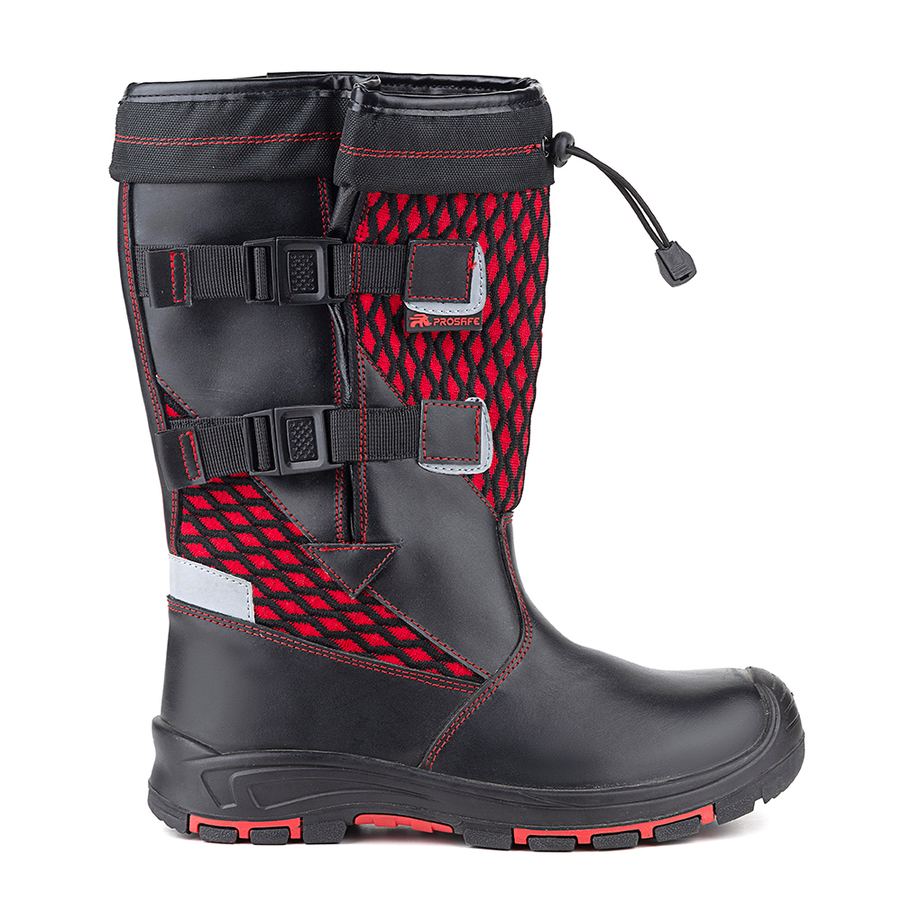Сапоги Prosafe серии profi изготовлены из натуральной кожи в комбинации с текстилем на мембране. Подкладка сапог и вкладная стелька выполнена из шерстяного меха, с содержанием натуральной овечьей шерсти- 50% и плотностью 900 гр. Голенище регулируется за счет мягкого клапана и фиксируется на ноге с помощью двух застежек и эластичного шнурка с фиксатором в верхей части. Светоотражающие элементы повышают видимость работников в темное время суток и на неосвещенной территории. Подошва- двухслойная, маслобензостойкая, литьевого метода крепления. Промежуточный слой изготовлен из ПУ с внутренней амортизирующей вставкой в пяточной части подошвы, способной гасить ударные нагрузки при ходьбе. Ходовой слой изготовлен из износостойкого, термостойкого нитрила, который способен защитить стопу от кратковременного контакта подошвы с нагретой поверхностью до 300°С. Композитный подносок, ударной прочностью 200Дж, обеспечивает защиту пальцев стопы. Глубина протектора ходового слоя подошвы составляет 3,5 мм.