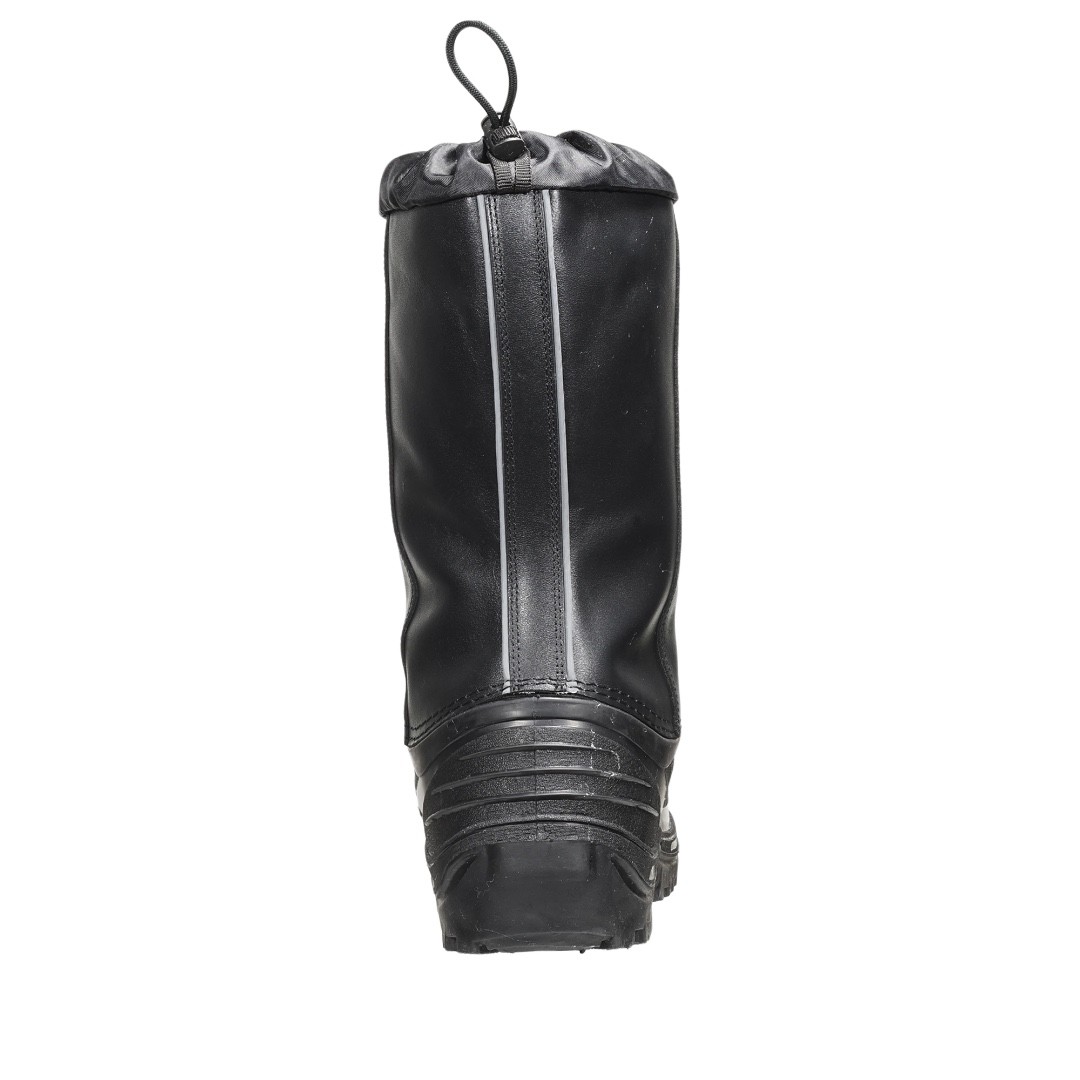 Голенище сапога изготовлено из натуральной жированной влагостойкой кожи. Верхний клапан предотвращает попадание снега во внутрь обуви. Цельная маслобензостойкая (МБС), кислотощелочестойкая (КЩС) галоша изготовлена из прочного, износоустойчивого, сохраняющего эластичность при низких температурах полимерного материала. Подошва с глубоким протектором и шипами противоскольжения. Обувь предназначена для эксплуатации во II, III, IV и особом климатических поясах, а также для защиты от производственных загрязнений, кислотных, щелочных и нефтяных растворов и рекомендована для сварочных работ.
