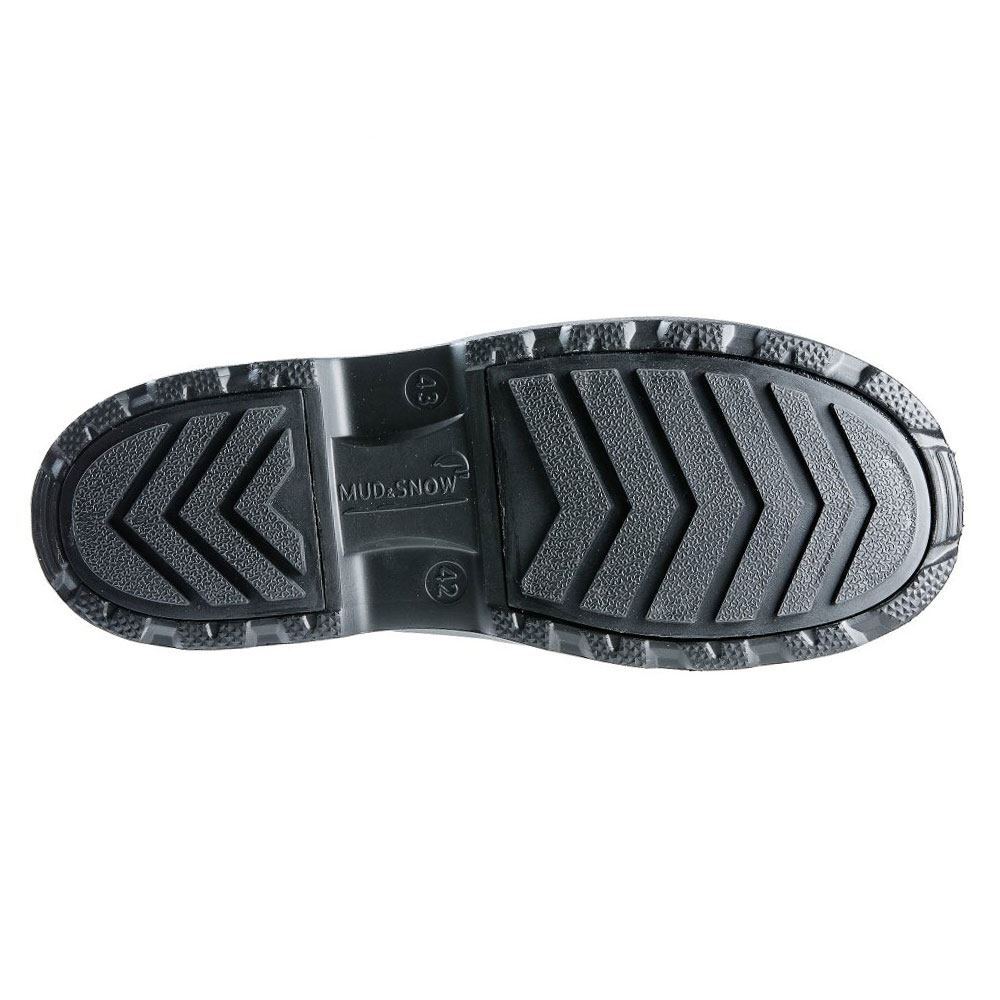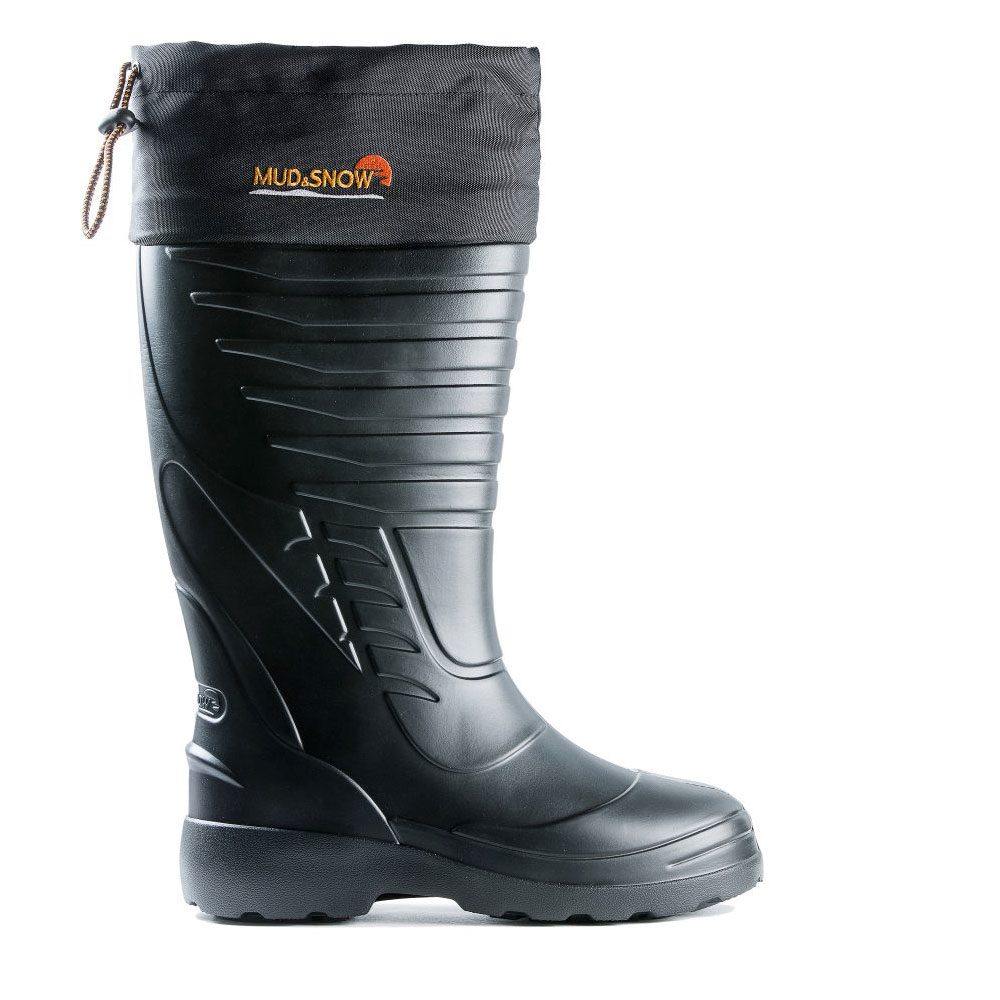 Сапоги «Mud&Snow» укомплектованы многослойным вкладным чулком (фольгированное нетканое полотно/шерстяной мех), который надежно отсекает наружный холод и сберегает тепло внутри сапога. Манжета сапог выполнена из водоотталкивающего материала, затягивается по ноге с помощью эластичного шнура, препятствуя попаданию грязи, снега, камней. Специальная накладка на подошву из термоэластопласта (ТЭП) увеличивает сопротивление скольжению, обеспечивает лучшее сцепление с поверхностью.
