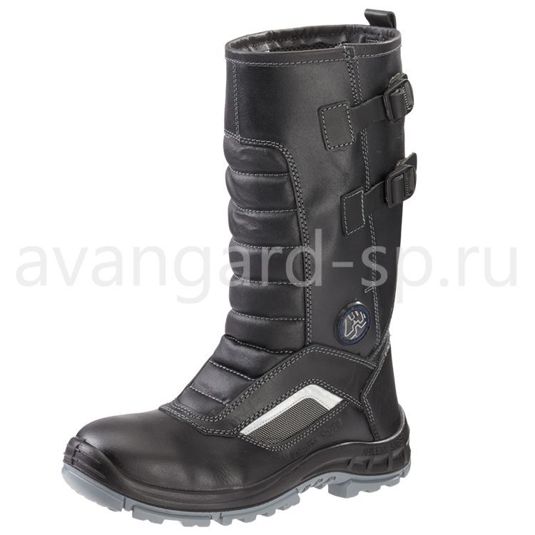 - круглый резиновый шеврон и тиснение Ahiless safety на коже по внешней боковой стороне,