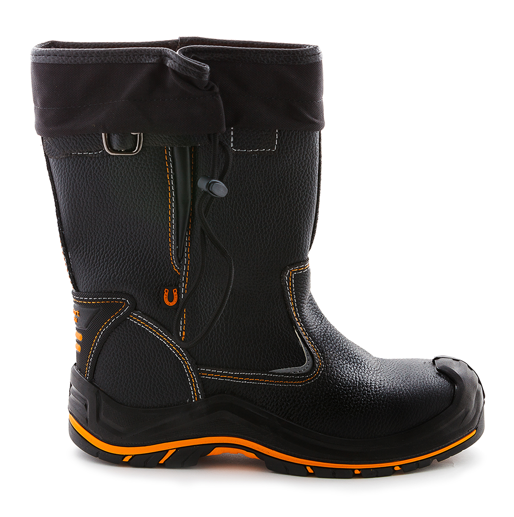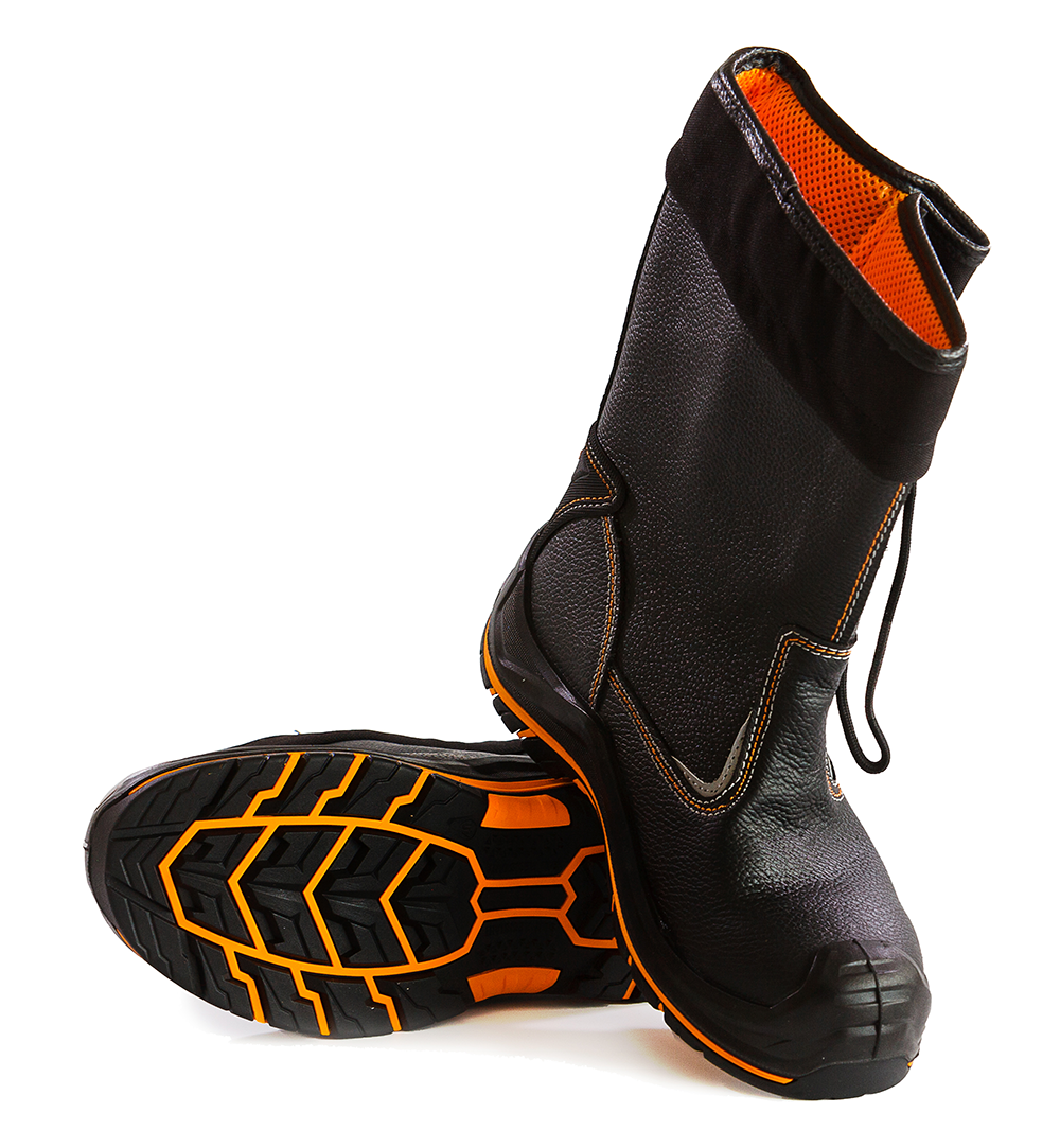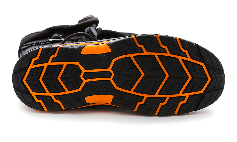 Подошва – двухслойная, устойчивая к воздействию нефти, нефтепродуктов, щелочей концентрации до 20%, повышенных температур. Верхний слой из полиуретана обладает амортизирующими свойствами, гасит ударные нагрузки, а также придает обуви легкость, комфортность и повышенные теплозащитные свойства. Ходовой слой изготовлен из износостойкой, термостойкой (+300°С / 60 с), морозостойкой резины на основе нитрильного каучука с улучшенным сопротивлением скольжению, стойкостью к деформациям, истиранию. Носочная часть имеет дополнительную защиту в виде полиуретановой накладки, предотвращающей механические повреждения обуви и препятствующей проникновению холода. Для защиты от ударов в носочной части стопы в обуви применяется композитный подносок (Мун 200), имеющий конфигурацию, препятствующую надавливанию верхнего края на стопу, и оборудованный прокладкой из полиуретана.