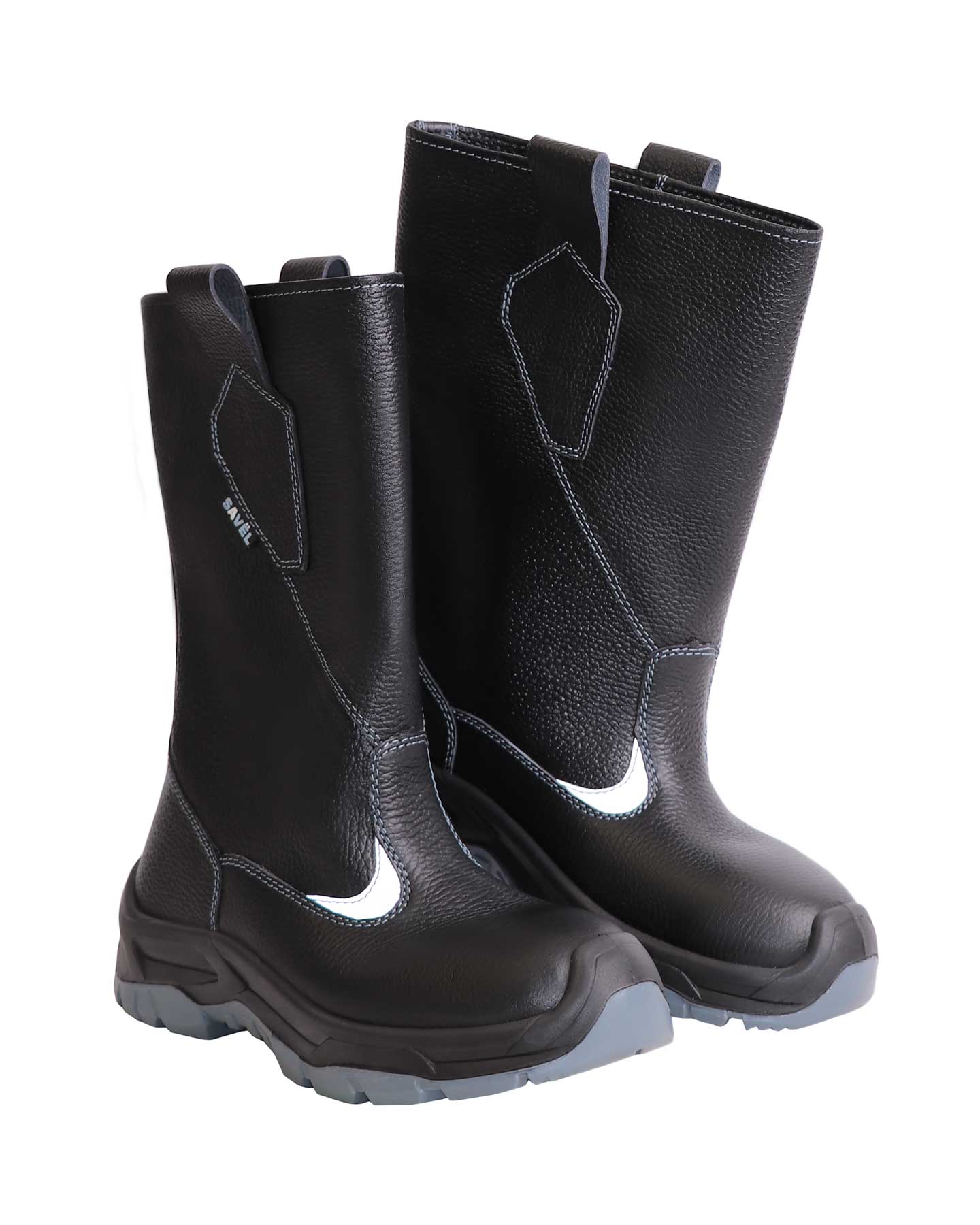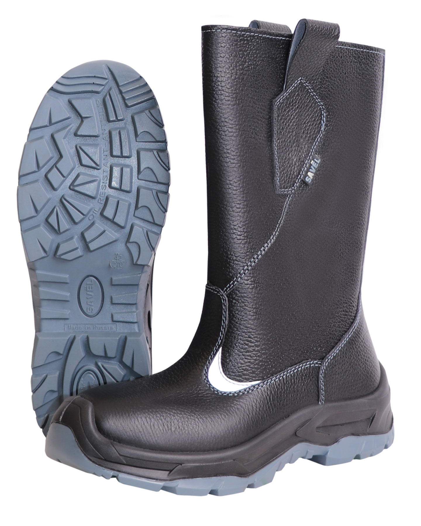 В качестве материалов для верха сапог используется натуральная кожа толщиной 1,8–2,0 мм. Голенище высотой 28,0 см с петлями для удобства надевания. Имеется отделка из световозвращающего материала.