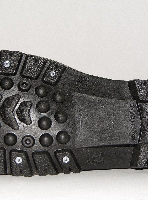 Галоша, изготовлена методом двухкомпонентного литья. Специальный морозостойкий состав отечественного производства , стойкий к истиранию, антискользящий. Усиленная носовая часть. Шпора для удобства снятия. Возможность ошиповки под заказ. Комфортная температура до – 30.