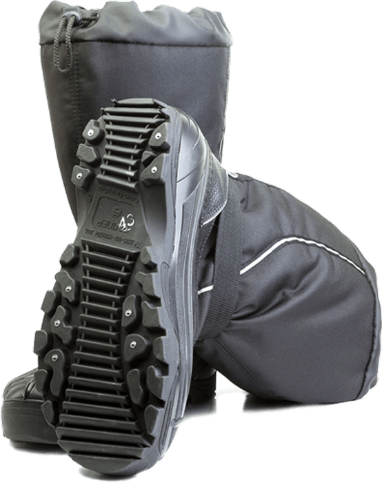 На подошвенной части галоши установлены стальные шипы с вольфрамо-карбидным наконечником и якорной посадкой, для повышения противоскольжения.