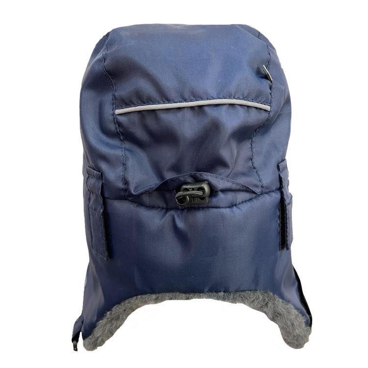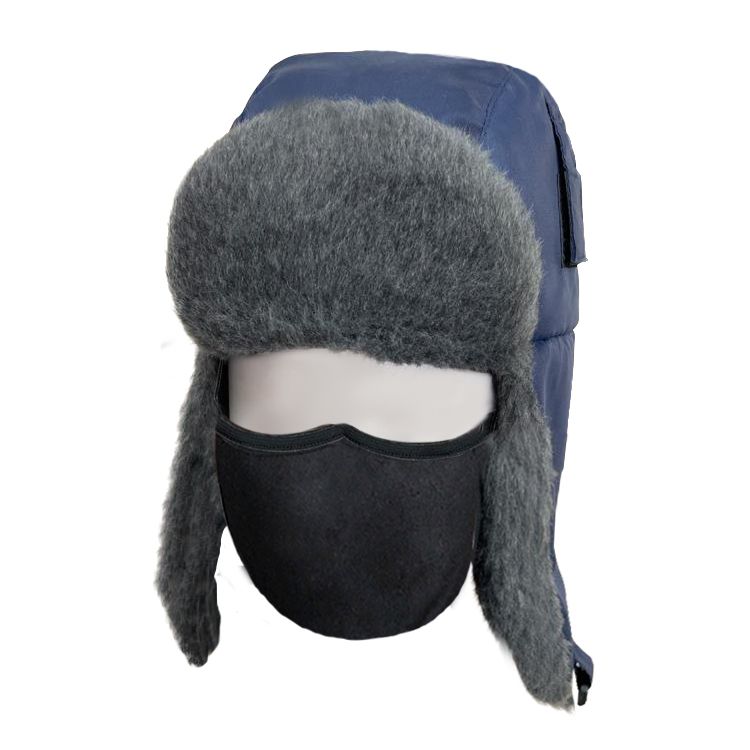 Шапка утепленная из ткани с водо- и ветрозащитными свойствами, на синтетическом утеплителе и подкладке из флиса. Козырек, боковые клапаны (уши) и нижняя часть затылочной области утеплены также искусственным мехом. По боковым частям шапки расположены хлястики на липучке, по 2 с каждой стороны, для крепления каски. По низу боковых клапанов (ушек) - хлястик с пряжкой для застегивания под подбородком. В затылочной области шапки расположена потайная регулировка и СВ кант. Внутри шапки вшита лицевая маска из мягкого флиса для защиты лица от холода.