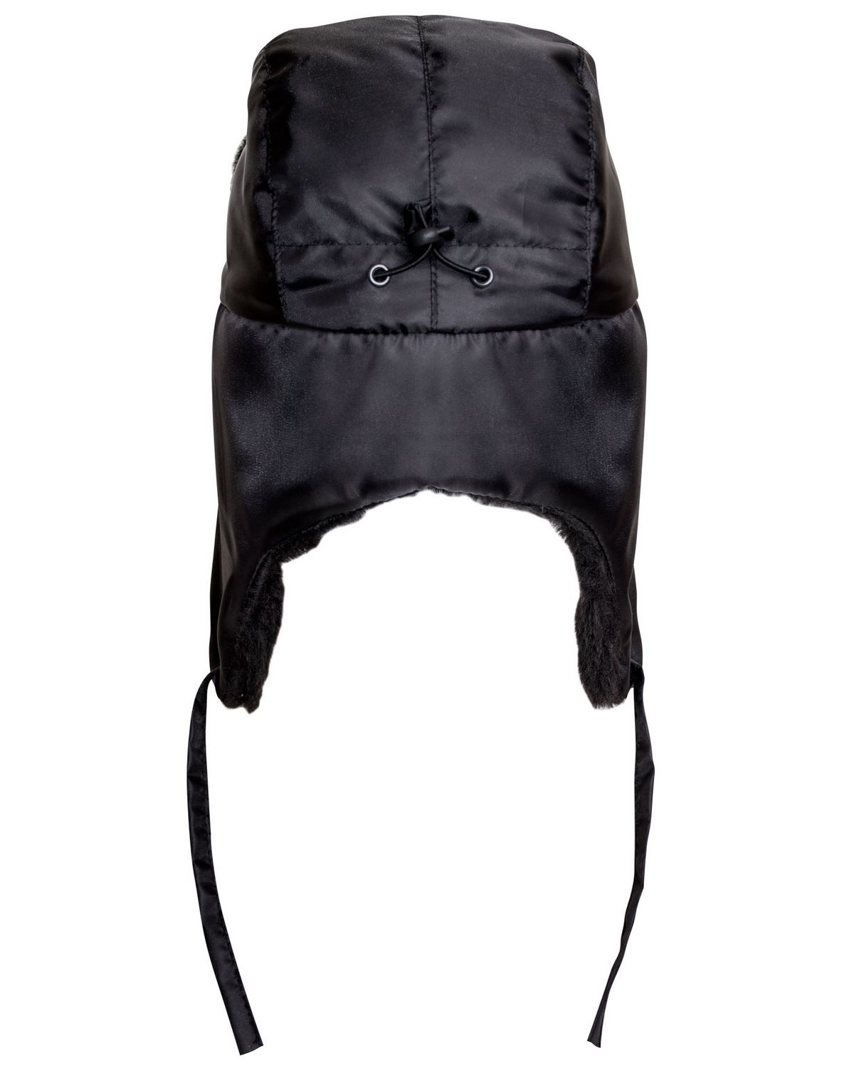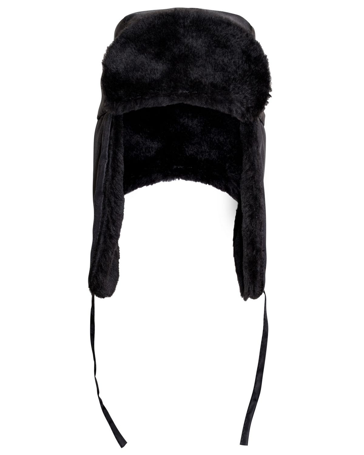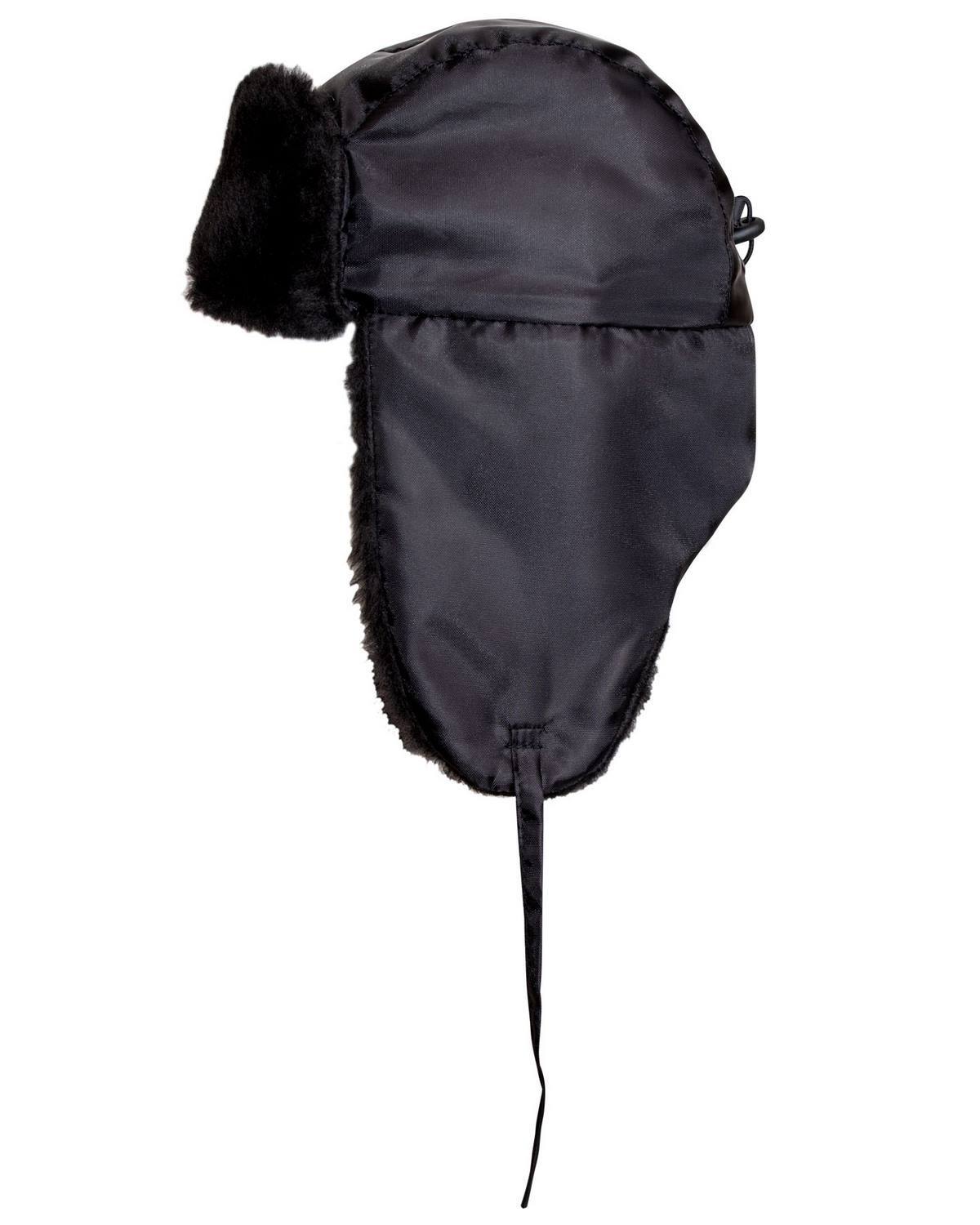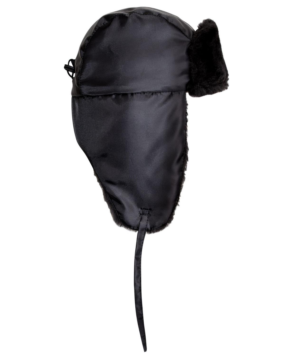 Шапка-ушанка зимняя черная с искусственным мехом черного цвета. В затылочной части объем регулируется за счет резинки и фиксатора.