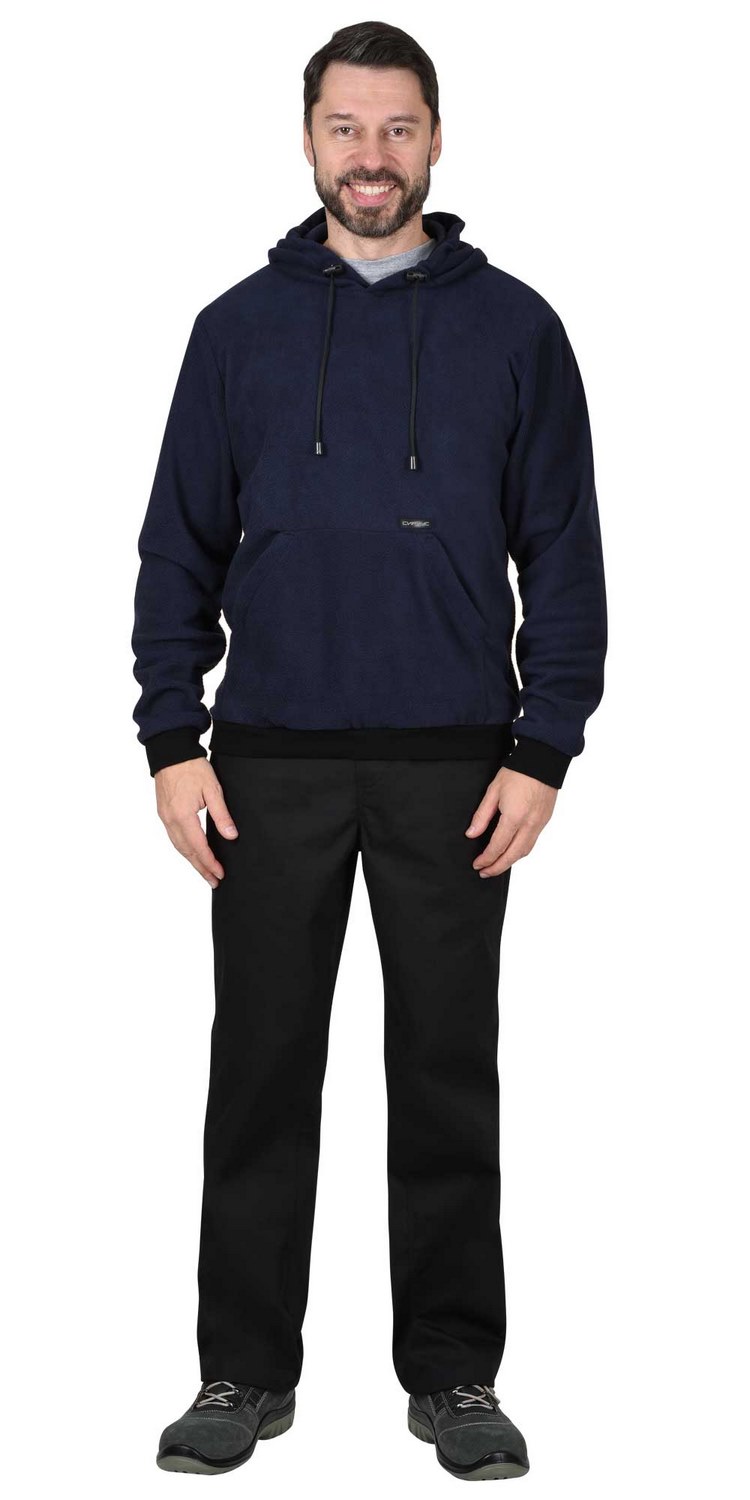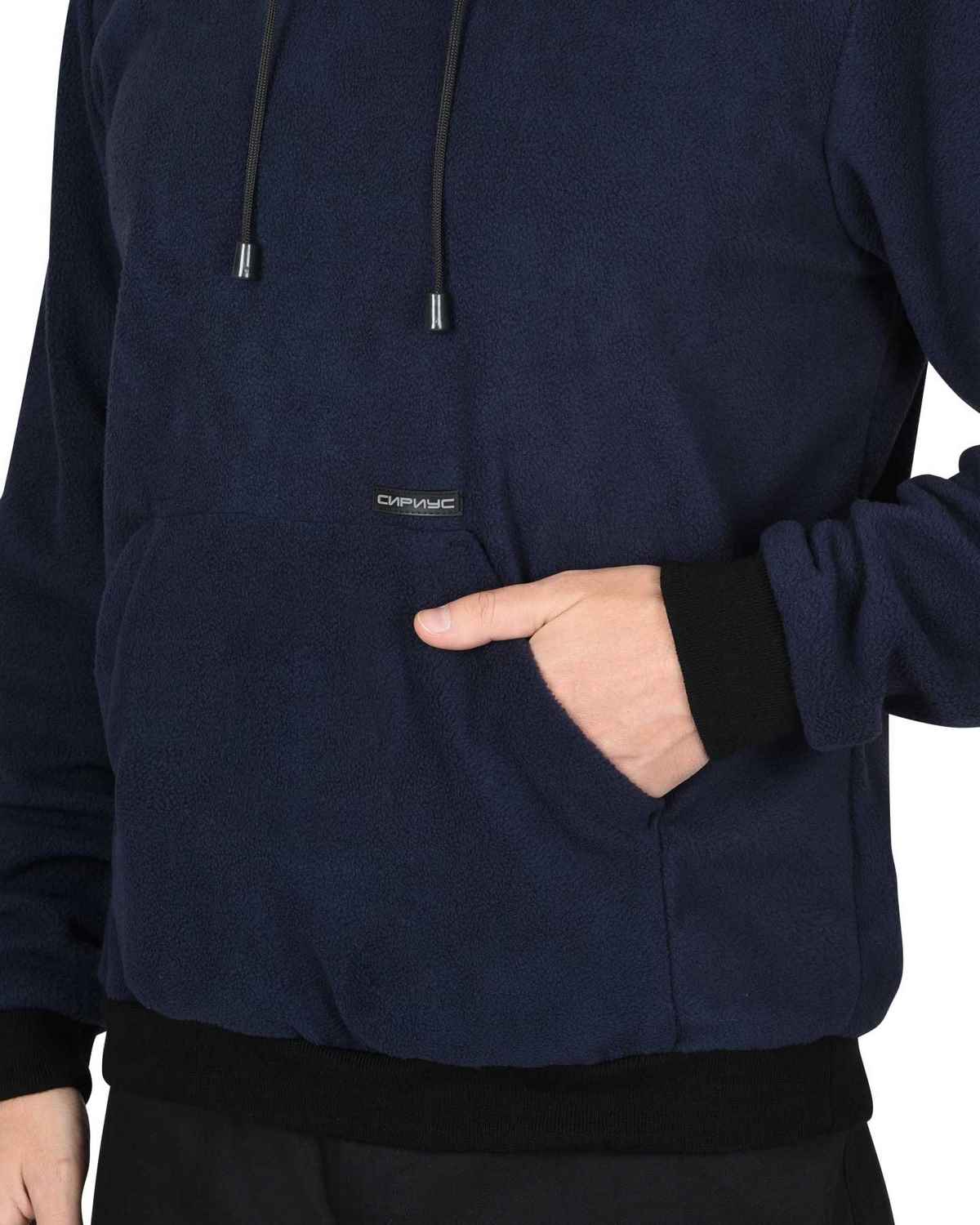Толостовка прямого силуэта; без центральной застежки; с втачным капюшоном; с нижним накладным большим фигурным карманом с боковыми наклонными входами. Рукава втачные с притачными манжетами. Низ куртки обработан притачным поясом из трикотажного полотна.