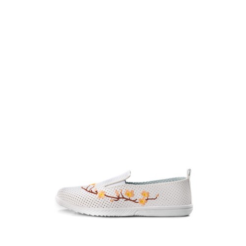 Туфли женские белого цвета с вышивкой из искусственной кожи на ПВХ подошве