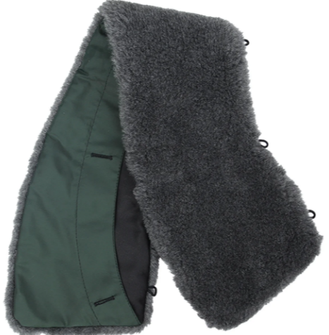 Надевается на тканевый воротник куртки и пристегивается пуговицами к куртке