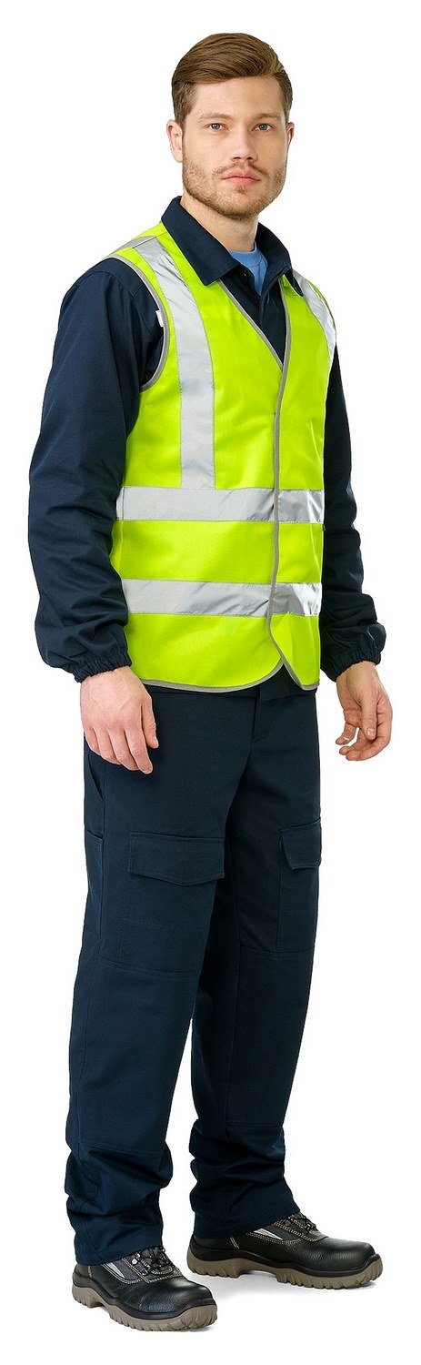 Ткань жилета соответствует европейскому стандарту EN 20471 для сигнальной одежды повышенной видимости. Фоновый материал обеспечивает высокую видимость в дневное время, а световозвращающие полосы – в ночное и в условиях недостаточной видимости (при плохой погоде).