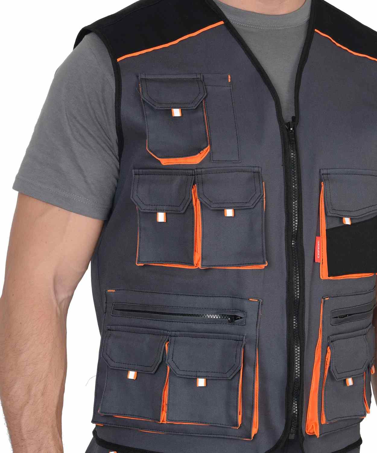 Жилет "Сириус-Манхеттен" (т.серый/черный/оранжевый)