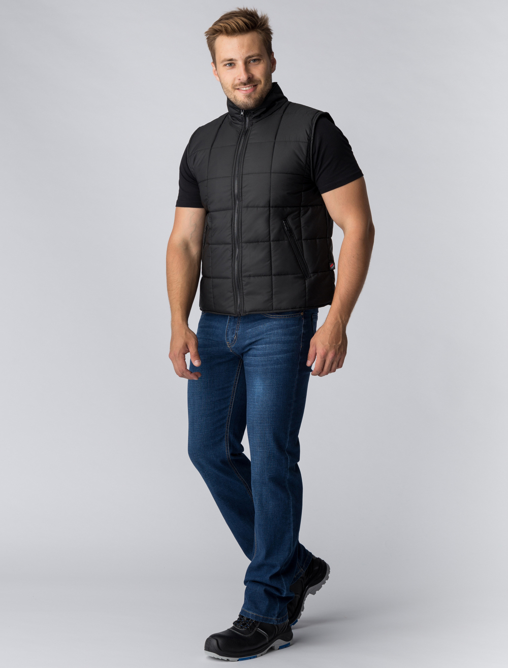Жилет утепленный «Офис» выполнен в классическом фасоне из высококачественных материалов. Стеганый жилет прямого кроя подходит как мужчинам, так и женщинам, прекрасно садится по фигуре, выступая отличным дополнением повседневных и рабочих образов. Благодаря плотной ткани с влагоотталкивающей пропиткой жилетка надежно защищает от осадков и отличается износостойкостью. Утеплитель синтепон помогает сохранить тепло, а воротник-стойка закрывает шею от ветра. Безрукавка дополняется удобными боковыми карманами на молнии, где можно хранить необходимые мелочи или записи. Утепленный жилет отлично сочетается с брюками, джинсами, толстовками, футболками и другой одеждой, обеспечивая комфорт и тепло во время работы, прогулок, путешествий и активного отдыха. Для указания ФИО присутствует этикетка с изнаночной стороны.